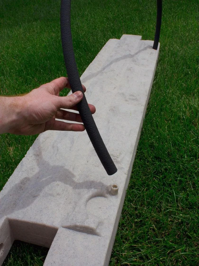 If you’ve ever had to build your own rock wall border or edging, then you understand how difficult a task it is. Don’t struggle with heavy, cumbersome, expensive, decorative bricks. With the Garden Wizard Landscape Border, simply connect large sections together in seconds without the physical burden. Each wall only weighs a few pounds and is easily connected with the next by using the included stakes (stakes can work on flat surfaces or be driven into the ground by sliding a piece of metal or rebar into the sleeve). Use the rock walls to border gardens or link them together to make a customized raised garden bed with self-watering walls. These walls hold and distribute up to 5 gallons of water with the included soaker hoses and clamps. Just pour water directly into the wall and the slow-drip, wicking action of the hoses does the rest. Made of polyethylene in the USA using FDA approved materials.