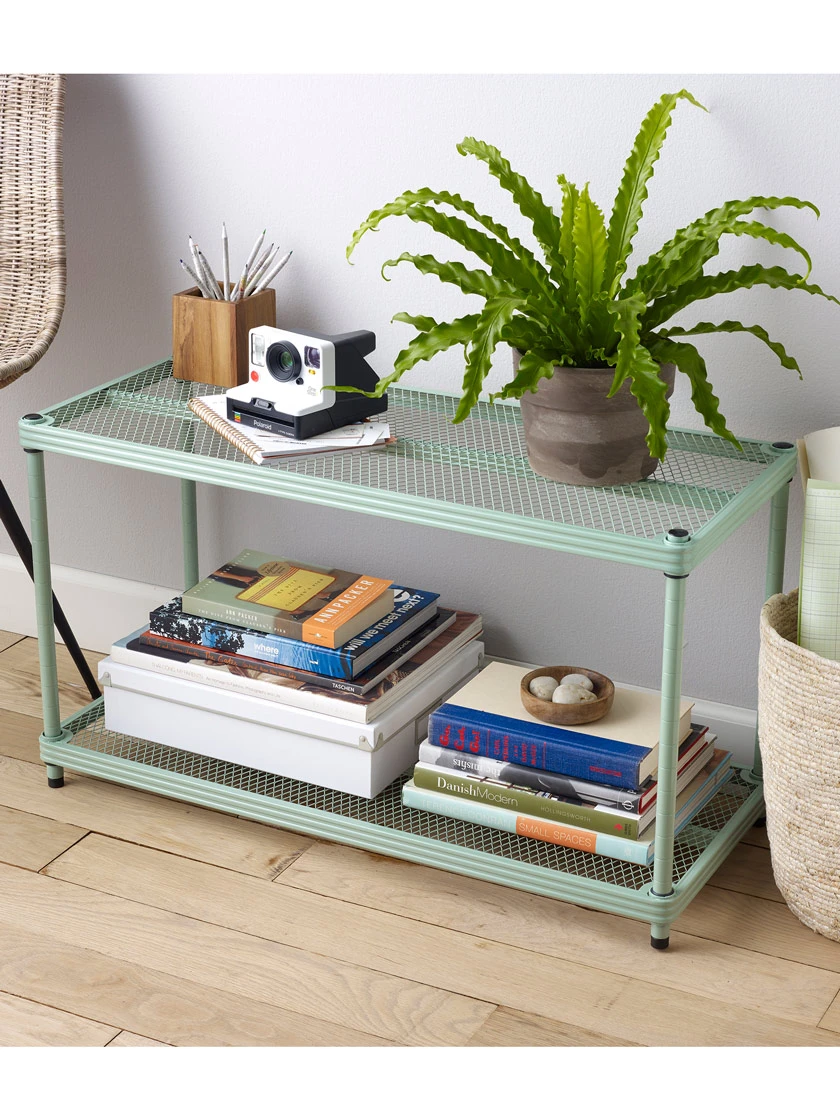 Traditional wire shelves can cause a headache as items can fall through the wide gaps on the shelves. Our brilliantly engineered mesh shelving units use a larger gauge of expanded metal mesh for style, strength and functionality. Each shelf has a weight limit of 440 pounds to safely hold everything from small knick knacks to large, heavy bins. Each MeshWorks® stacking shelf includes 2 adjustable shelves and hardware for stacking multiple units as high as you need.