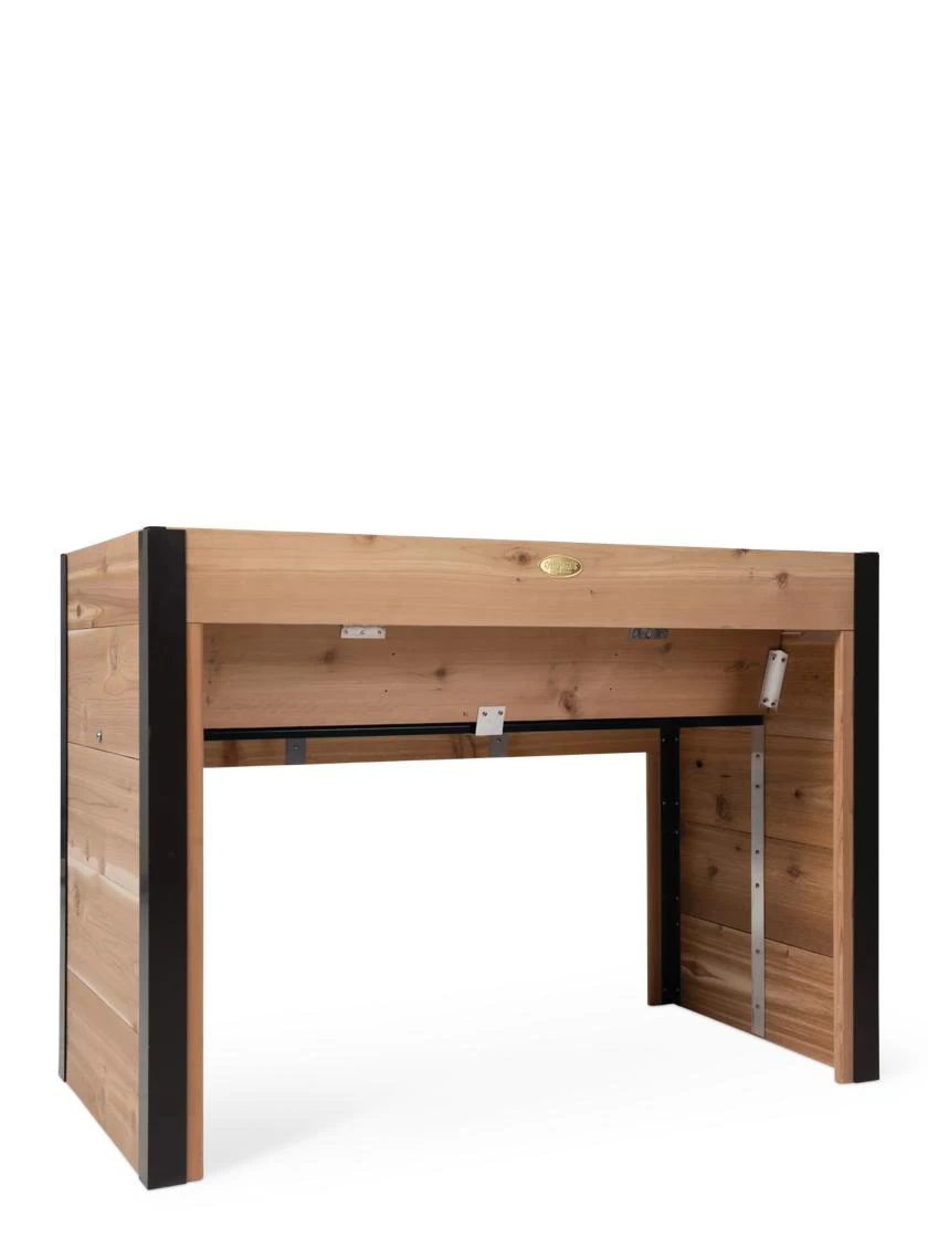 This one-of-a-kind, ADA-compliant elevated raised bed has a shallow planting shelf in front to allow plenty of room for your wheelchair to roll underneath. This area is intended for herbs and low-growing greens that will be harvested regularly. A deeper planting area in back is ideal for root veggies and larger plants like tomatoes. Thoroughly tested, it’s designed not only for your wheelchair to fit comfortably underneath but also allow you to tend even the furthest corner without uncomfortable or dangerous overreaching.